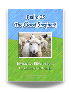 Psalm 23 was written as if a sheep were telling his friends about his great and loving shepherd and how he faithfully cares for him. The Bible also tells us that Jesus is the Good Shepherd of those who follow him. He knows his sheep and the sheep know him. These interactive Bible lessons focus on understanding and memorizing Psalm 23 and how they apply to our Good Shepherd, Jesus, and his loving care over his children. (For K-5th grade)