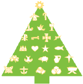 What you do: On the first day of Advent cut the green felt into a tree shape. (Cut the ornaments beforehand, then arrange them on top of the felt to see how large your tree needs to be. You can enlarge or reduce the size of your patterns too.) Hang tree on a wall or door. Each day going towards Christmas day, decorate one ornament to go on the tree. Chrismon ornaments are decorated using gold trimmings. (Attach ornaments to the felt tree with Velcro. The loop side of the Velcro stuck to the back of your ornament is usually sufficient to adhere to the felt.) On Christmas Day place the Baby Jesus in the Manger ornament on your tree.