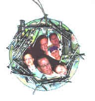 What you need: Old CD, nails, glue stick, tacky glue or hot glue*, photo of a child, or children, with their father, string, CD Sentiment Pattern (below).