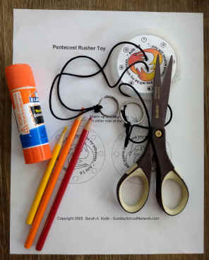 The Pentecost Rusher toy is similar to early Americana whizzer toys. When you hear the rushing wind sound and see the tongues of fire,