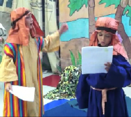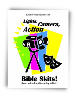 "We use "Light's, Camera, Action! Bible Skits - Gospel of Mark." First, we tell the story to the kids, then we select volunteers to do the parts, pass out skits and they go off and get into costumes, while the other children come to tables where we have a coloring and activity pages and a snack. When the kids are all costumed up we move back to the chairs to watch the skit. Then we end with the discussion questions. Sometimes we have a contest, usually boys against girls, to answer both the review questions and then other basic bible trivia questions. We didn't ever get to doing the videotaping of the skits and watching them, but maybe another year. We were blessed to have several painted backdrops from plays done in the past. This gave us a defined area that we do the teaching & the skits. It is such a blessing to see how God pulled all these things together for His good purposes. Thank you for making these skits available at such a reasonable price!"
