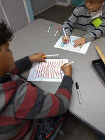 with markers, buttons, sequins, feathers, beads.)