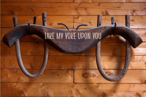 A yoke is a wooden bar that joins the heads or necks of two animals, such as oxen or horses, allowing them to pull heavy loads and accomplish a difficult task more effectively. A younger animal is often paired with an older animal. Since the older animal has learned the work required of it, this helps the younger animal to learn more quickly. The older animal also knows the right paths to take and avoids stepping in holes, thereby protecting the younger animal from harm. When Jesus told his disciples to take on his yoke, this was the idea he had in mind; he wanted them to be trained by him, to go where he leads, because he knows the way to eternal life with God.