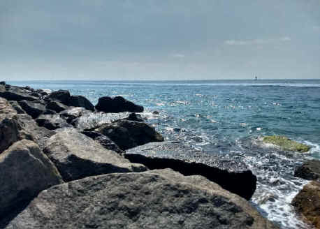 The beauty at the ocean was beyond compare. It was a delightfully cool morning with a piercing, clear blue sky. Sunlight danced across the giant boulders lining the inlet, the shadows contrasting with the light and forming magnificent shapes and patterns. The water glistened like millions of diamonds across the waves. It was breathtaking. Breathing in the salty air and feeling the breeze against my skin, I worshiped the God of creation while listening to the praise song
